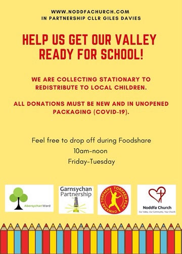 The ‘Ready for School’ Project which will officially launch Monday 24th August will link in with the other successful schemes at Noddfa Church, such as Food Share, Uniform Donation and Home Work Club.